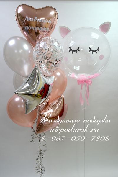 Фонтан из 10 шаров на грузе - 1шт (в фонтане 5 шаров б/рисунка, 2 шара "Конфетти", 1 фольгированное сердце с индивидуальной надписью, 2 фольгированные звезды)