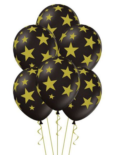 Высококачественные гелиевые шары из натурального латекса "Золотые звезды" черные.