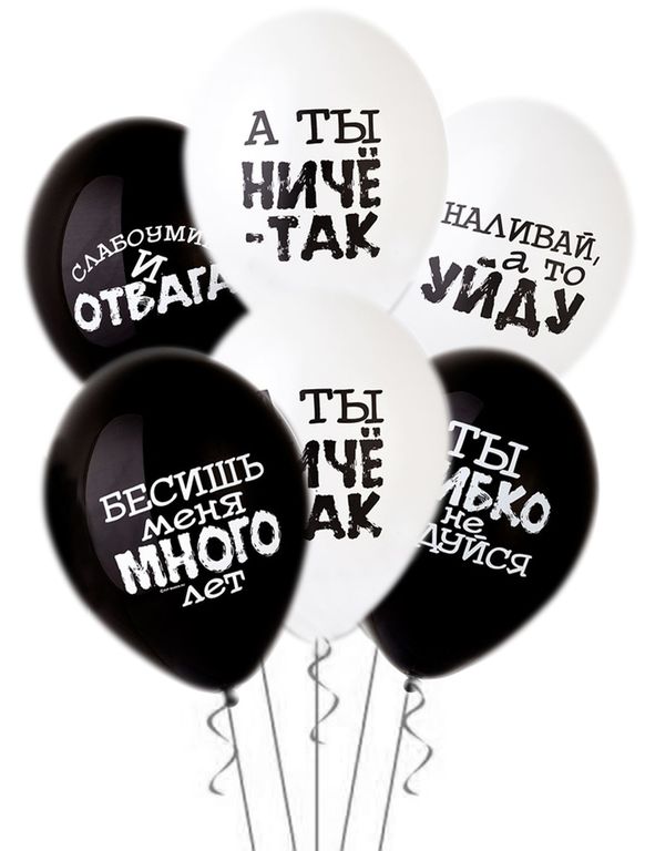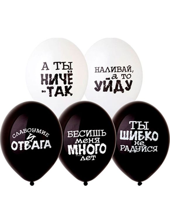 Высококачественные гелиевые шары из натурального латекса "Ругательные" (бело-черные)